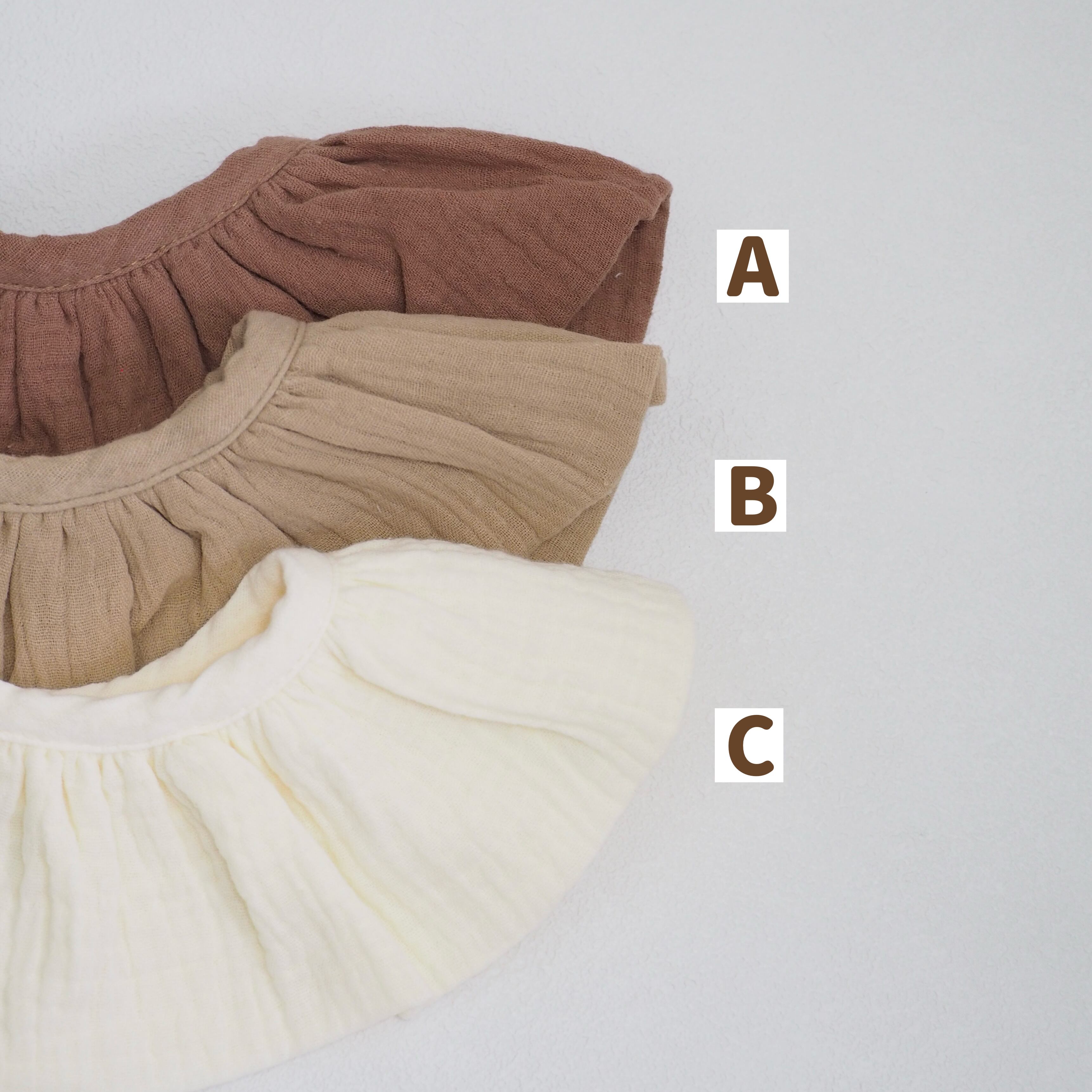 A.ココア/B.ベージュ/C.ホワイト